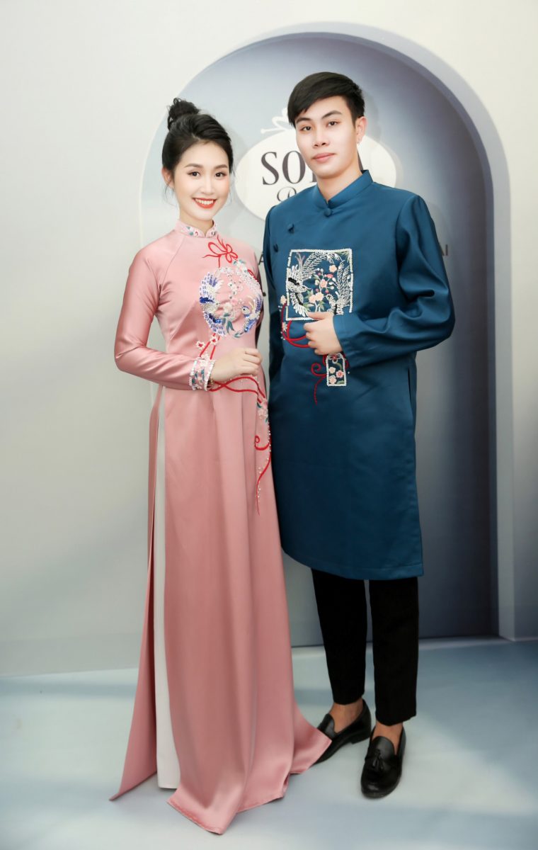 Những mẫu áo dài dâu đều kín đáo giữ được nét truyền thống. Nhưng vẫn được cách tân hiện đại mang lại vẻ đẹp thùy mị trong ngày ra mắt quan viên hai họ “Theo chàng về dinh”. Còn áo dài chú rể được thiết kế đồng điệu với áo dài cô dâu. Những họa tiết tương xứng thể hiện sự gắn kết, đồng lòng của cặp đôi.